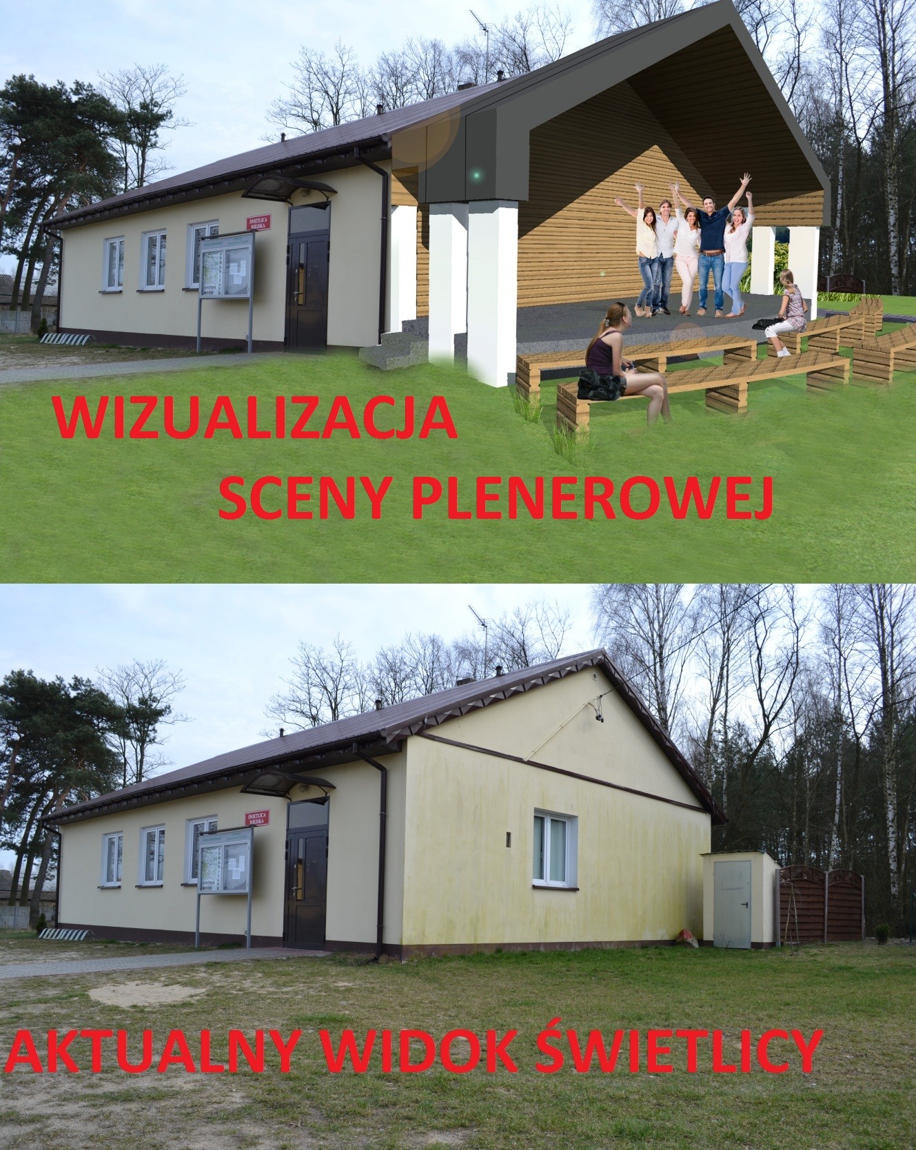 z projektem "LEŚNA SCENA" z nadzieją na jego realizację czyli wybudowanie sceny plenerowej przy Świetlicy Wiejskiej w Dziadowicach Folwark.